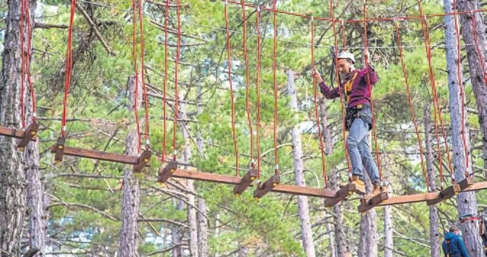 Denizli Büyükşehir Belediyesi'nin geçtiğimiz yıl hizmete açtığı ve ilk gününden beri kentteki sosyal yaşamın vazgeçilmez renklerinden biri haline gelen Teleferik ve Bağbaşı Yaylası yine bir ilke imza attı. Bungalov ev, Yörük çadırı, restoran, piknik alanı gibi tesislerle bugüne kadar milyonlarca ziyaretçiye hizmet veren teleferik ve Bağbaşı Yaylası'nda; yeni kurulan tırmanma ve atlama kulesi ile macera parkuru, heyecan dolu bir gün geçirmek isteyen vatandaşların uğrak yeri oluyor. Powerfan adı verilen yüksek güvenliğe sahip 14 metre uzunluğundaki tırmanma ve atlama kulesi heyecan isteyen ziyaretçilerini bekliyor. Vatandaşlar burada, uzman eğitmenler ve yüksek güvenlikli sistem eşliğinde eğlenceli ve adrenalin dolu dakikalar geçiriyor. Teleferik ve Bağbaşı Yaylası'nın hemen yanı başındaki ormanlık alanda kurulu 31 oyun ve 32 platformdan oluşan macera parkuru ise eğlenmek ve spor yapmak isteyenlerin adresi oluyor. Aynı anda 31 kişinin yarışıp spor yapabildiği tesiste yaklaşık 1 saat süren parkur büyük ilgi topluyor. Yüksek güvenlik sistemiyle kurulu parkura giren yarışmacılar, kurallara göre parkuru tamamlamak zorunda. Eğlenceli ve tempolu geçen parkurda yarışan vatandaşlar, unutulmaz bir gün yaşama imkanı buluyor. Büyükşehir Belediye Başkanı Osman Zolan, Teleferik ve Bağbaşı Yaylası ile bir ilke imza attıklarını belirterek, "Geçtiğimiz yıl hizmete açtığımız Teleferik ve Bağbaşı Yaylası; halkımızın yoğun ilgisini kazandı, kentteki sosyal yaşama güçlü bir alternatif oluşturdu. Biz bu ilgiyi daha da artırmak hedefiyle bir yeniliğe daha imza atarak, tırmanma ve atlama kulesi ile macera parkuru kurduk. Güvenlik önlemlerini yüksek tuttuğumuz alana, farkı ve heyecan dolu bir gün yaşamak isteyen tüm vatandaşlarımızı bekliyoruz" dedi.