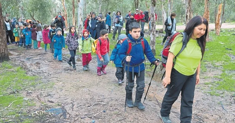 İzmir'de öğrencileri dijital bağımlılıktan uzak tutmak amacıyla başlatılan proje kapsamında çocuklar dağ yürüyüşü, tırmanış, kamp yapıyor. Karşıyaka Kaymakamlığı, Orman Bölge Müdürlüğü ve Olympos Dağcılık Kulübü'nün geliştirdiği proje kapsamında ilçe genelindeki okullarda eğitim gören tüm öğrenciler, hafta sonları Örnekköy Çocuk Ormanı'ndaki etkinliklere davet ediliyor. Dowm sendromlu öğrencilerin de katıldığı proje kapsamında bir araya gelen farklı yaş gruplarından yaklaşık 50 öğrenci, güne kültür fizik hareketleriyle başlıyor. Doğa eğitmenlerinin verdiği teorik bilgilerin ardından 5 kilometrelik etapta yürüyen öğrenciler, kamp ve çadır kurmaktan kaya tırmanışına kadar birçok önemli konuda uygulamalı eğitim alıyor. Öğrencilerin doğada yürüyüşleri ve verilen eğitimler sırasında cep telefonu, bilgisayar gibi dijital cihazlarla ilgilenmelerine izin verilmiyor. Etkinlik, çeşitli oyunlar oynanarak son buluyor.