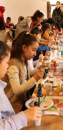 Kuşadası Belediyesi Drama Eğitmeni Mehmet Turan koordinatörlüğünde düzenlenen etkinliğe 5-12 yaş arası 200 çocuk katıldı. Kuşadası Belediyesi İbramaki Sanat Galerisi'nde iki seans halinde düzenlenen etkinlikte çocuklar, özel boyalarla kendilerine verilen taşlar üzerine değişik desenler çizerek keyifli vakit geçirdi.