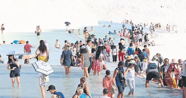 Ege ve Akdeniz'deki tatil beldelerinden dönüşe geçenlerin de Pamukkale'ye uğramasıyla, ören yeri girişinde uzun kuyruklar oluştu. Denizli Turistik Otelciler ve İşletmeciler Derneği (DENTUROD) Başkanı Gazi Murat Şen, , ülke genelinde oldukça verimli geçen 2019 turizm sezonundan Pamukkale'nin de nasibini aldığını söyledi. Pamukkale'de bayram tatili boyunca ciddi yoğunluk yaşandığını dile getiren Şen, "Pamukkale, yerli ve yabancı ziyaretçilerin uğrak yerlerinin başında geliyor. Yaz döneminde yerli misafirlerimizin arttığı bölge, bayram tatilinde sahil beldelerine gitmeyen vatandaşlarımızdan ilgi gördü. Pamukkale, ayrıca sahillere gidenlerin de geçiş güzergahında olmasından dolayı tercih edildi. Bayramın 4 gününde 57 bin ziyaretçinin giriş yaptığı Pamukkkale'yi, arifeyle birlikte 5 günlük tatilde 70 bin yerli ve yabancı turist ziyaret etti. Konuklarımız, eşsiz güzellikteki travertenlerde termal suyla temas ederek buradaki güzelliği yaşadı. Denizli'de daha çok ziyaretçi ağırlamak istiyoruz" dedi