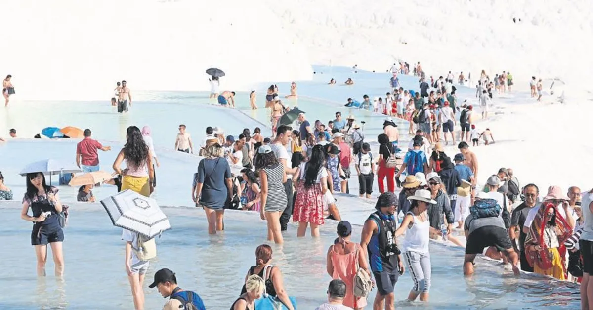 Denizli'de UNESCO Dünya Mirası Listesi'nde yer alan Pamukkale, Kurban Bayramı tatilinde yerli ve yabancı turistlerin uğrak noktası oldu. Türkiye'nin önemli turizm merkezlerinden Pamukkale, Kurban Bayramı tatilinde yaklaşık 70 bin ziyaretçiyi ağırladı. Travertenleri, şifalı termal suyu ve çevresindeki antik kentleriyle yılın her mevsimi ilgi gören Pamukkale, bayram tatilinde en yoğun günlerini yaşadı. UNESCO Dünya Mirası Listesi'nde bulunan Pamukkale'yi görmek üzere dünyanın dört bir yanından gelen yabancılara bayram tatilini fırsat bilen yerli turistler de eklenince, bölgede adeta adım atacak yer kalmadı.