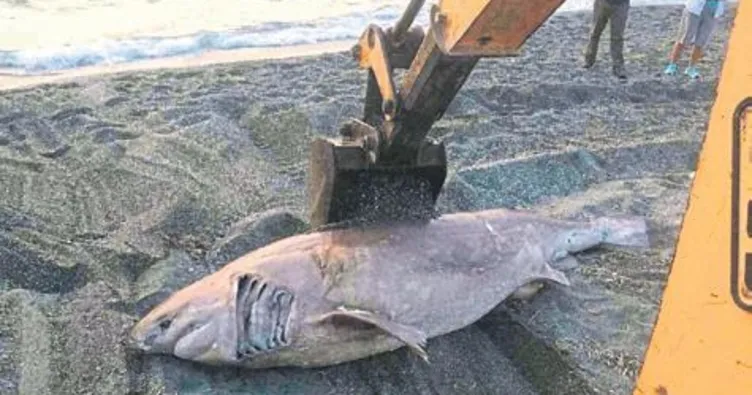 İZMİR'IN Seferihisar ilçesinde, karaya yaklaşık 900 kilo ağırlığında köpek balığı vurdu. Geçtiğimiz gün sabah saatlerinde, Ürkmez Mahallesi'ndeki halk plajına yaklaşık 900 kilo ağırlığında olduğu söylenen 'Boz Camgöz' türü olduğu tahmin edilen 3 metre uzunluğunda köpek balığı vurdu. Sahilde yürüyüş yapan vatandaşlar, köpek balığını görünce büyük şaşkınlık yaşadı. Durumun bildirilmesi üzerine Seferihisar Belediyesi'ne ait ekipler, söz konusu sahile gelerek köpek balığını kaldırdı. Köpek balığının ölüm nedeni araştırılırken, ekipler iş makinesi ile köpek balığını sahilden alarak belediyeye ait hayvan mezarlığına götürdü.