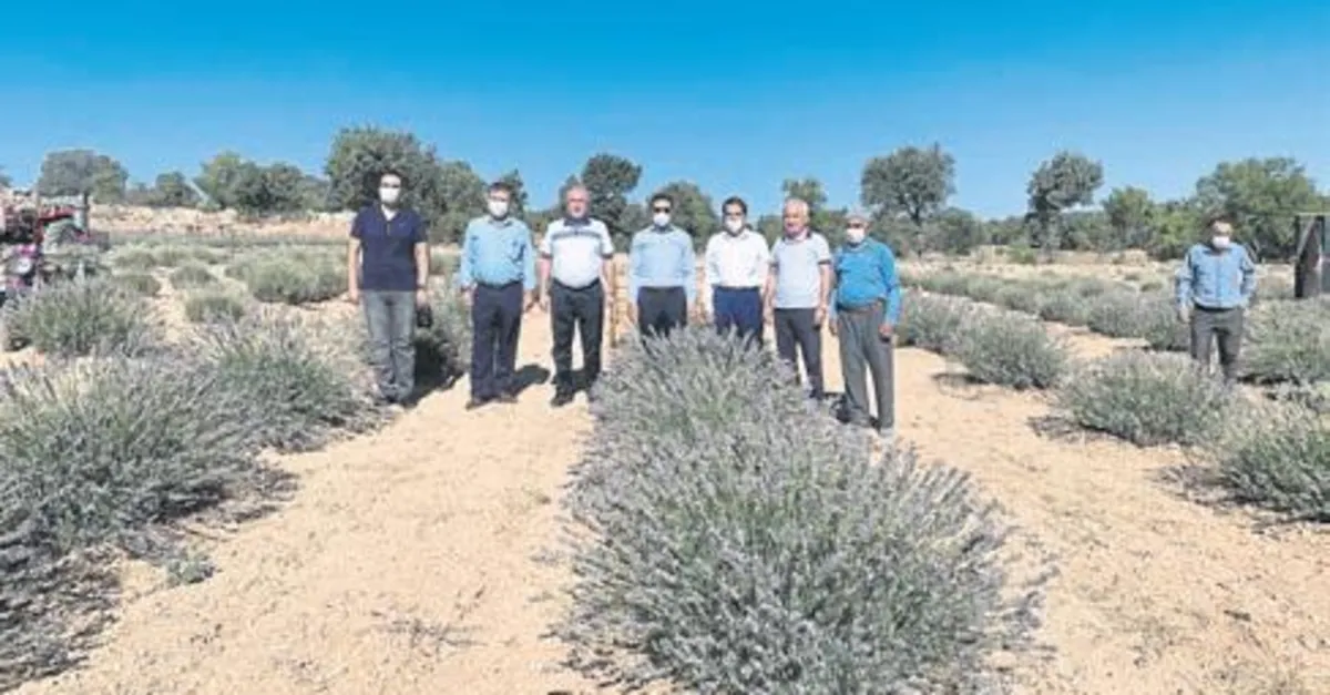 DENIZLI Ticaret Odası (DTO) Başkanı Uğur Erdoğan, lavanta sezonunu kapatan aromatik bitki üreticilerinin hasat sevincine ortak oldu. Pamukkale Tıbbi ve Aromatik Bitkiler Üreticiler Birliği Kurucusu ve Fahri Başkanı Hüseyin Akkaya ile lavanta üreticilerini, Gözler'deki tarlalarında ziyaret eden DTO Yönetim Kurulu Başkanı Uğur Erdoğan, çiftçilerden lavanta üretimi hakkında bilgi aldı. Üreticilerin altın değerindeki alın terinin, ülke ekonomisine katkı sağladığını belirten Erdoğan, "Ülkemizde üretilen kekiğin yüzde 87.6'sı, Denizli'mizden. Türkiye'nin 1 numaralı kekik üreticisiyiz. Ülkemizde yetiştirilen 17 bin 965 ton kekiğin, 15 bin 729 tonu bizden. Denizli, 90 bin 97 tonla, şaraplık üzüm üretiminde de 1'inci. Sofralık çekirdeksiz üzüm üretiminde ise, 185 bin 524 tonla, Manisa'dan sonra 2'nci. 2 bin 167 tonluk anason üretimiyle ülkemizde 3'üncü. 157 tonluk adaçayı üretimiyle tüm Türkiye'de 2'nci üretici. 5 bin 66 ton haşhaş üretimiyle de ülkemizin haşhaş üreticileri arasında 3'üncü sırada" diye konuştu.