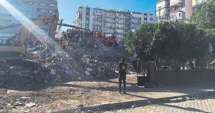 Ege Denizi'nde Seferihisar açıklarında önceki gün saat 14.51'de meydana gelen 6.6 büyüklüğündeki depremde yıkılan binalarda arama-kurtarma çalışmaları aralıksız sürüyor. Depremde yıkılan 9 katlı Emrah Sitesi'ndeki enkazdan arkadaşının iki çocuğunun çıkarılmasını sağlayan Ali Adışen, bir an olsun enkazın çevresinden ayrılmıyor. Bayraklı ilçesinde yıkılan Emrah Sitesi'nin yakınında görevli olduğu apartmanın 6'ncı katında depreme yakalanan Ali Adışen, çok zor bir gün geçirdiklerini söyledi. Depremi hissetmesiyle büyük şoka uğradığını anlatan Adışen, "Eşimle birlikte binanın son katındaki dairede temizlik yapıyorduk. Hafiften sallanma oldu, sonra hanımın yanına koştum. Sonra birden hızlandı. Oturduğum yere çöktüm, kelimeişehadet getirdim. Sallanma durunca, hemen çocuklarımın yanına indim. Sokağa çıktığımda ise ortalık felaketti. Feryatlar, ağlayanlar, bağırmalar..." diye konuştu.