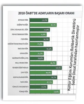 2018 Ağustos ayında düzenlenen ÖABT 16 farklı branşta yapıldı. Ancak hiç alanda başarı ortalaması yüzde 60'ı bile bulamadı. İlköğretim matematik alanında öğretmen adaylarının yüzde 25'i, lise matematikte ise adayların yüzde 26'sı başarılı olabildi. Rehber öğretmenlikte adayların başarı oranı yüzde 58.5 iken, bu oran Türkçe öğretmenliğinde yüzde 54.9, tarihte yüzde 42.2, sosyal bilgilerde yüzde 50.2 oldu. Sınıf öğretmenliği başarı oranı ise yüzde 40.4'te kaldı. Eğitimciler ise öğretmen adaylarına verilen derslerin içerik yönünden yeniden düzenlemesi gerektiğini savunuyorlar.