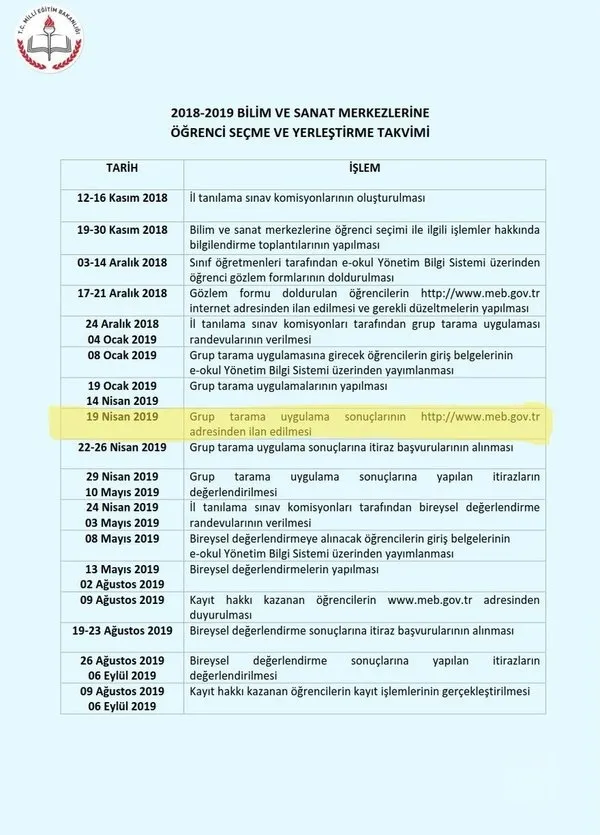 Bu bağlamda, BİLSEM sınav sonuçları 19 Nisan 2019 tarihinde açıklanacak.