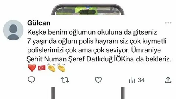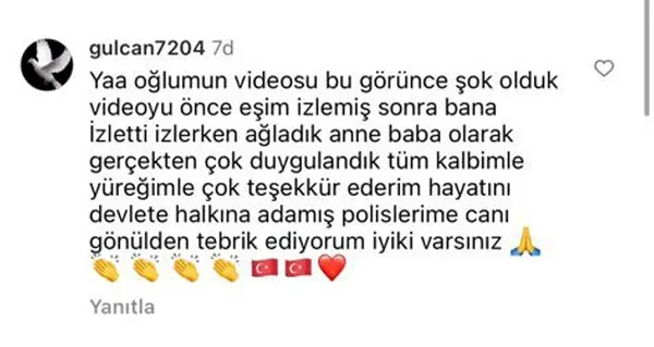 Veli Gülcan Acar klibin altına "Anne ve babası olarak çok duygulandık ve ağladık. Bütün kalbimizle çok teşekkür ederiz. Hayatını devlete ve halkına adamış polislerimize canı gönülden teşekkür ediyoruz. İyi ki varsınız... Oğlumuz o gün çok mutlu oldu. Hafızasında bu güzel anıyı hep hatırlayacak" yazarak ziyarette bulunan polislere ve İstanbul İl Emniyet Müdürlüğü'ne teşekkür etti.