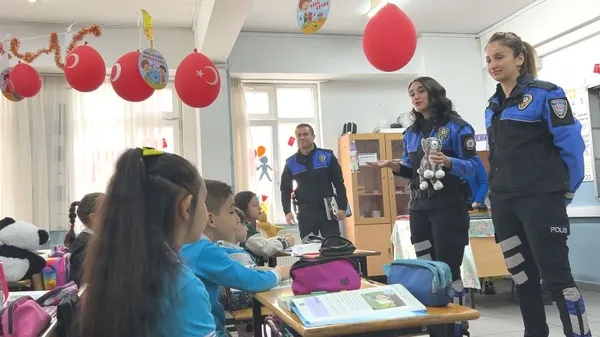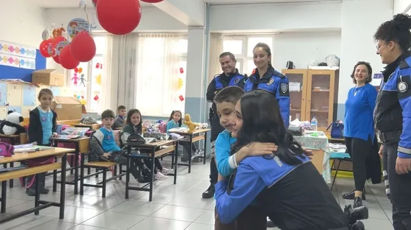 Polisler öğrencilerle birlikte ders çalıştı. Öğrencilere eğitici ve öğretici hediyeler verildi. O ziyaretle ilgili de bir dakikalık özel bir klip hazırlandı.