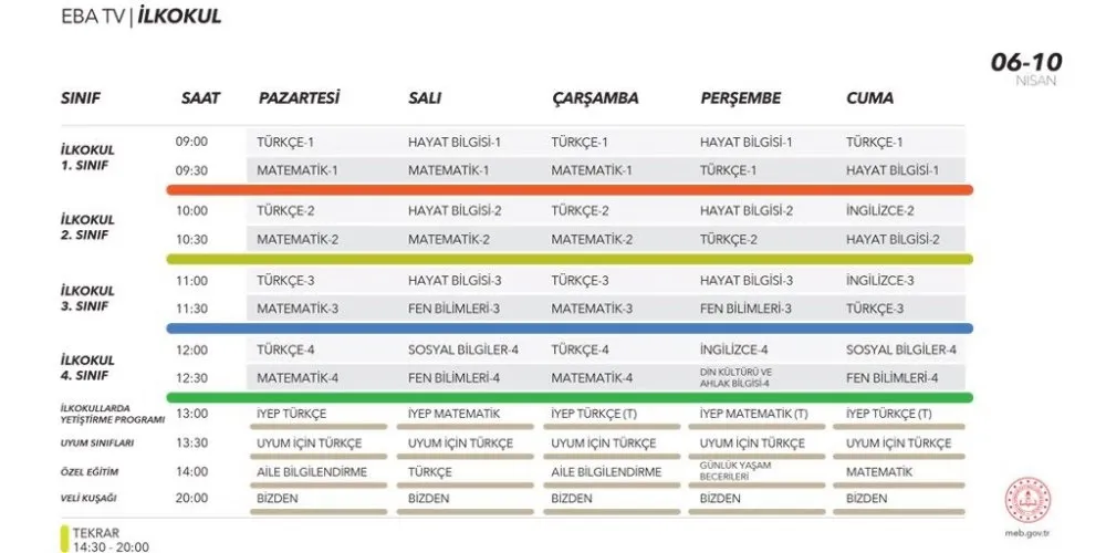 İLKOKUL UZAKTAN EĞİTİM DERS PROGRAMI