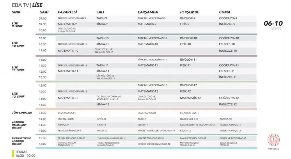 İşte, 7 Nisan Salı ders programı, yayın akışı ve uzaktan eğitim canlı izleme ekranı;