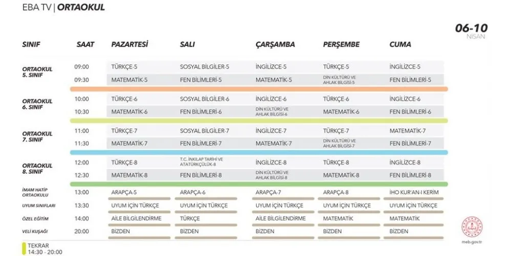ORTAOKUL UZAKTAN EĞİTİM DERS PROGRAMI