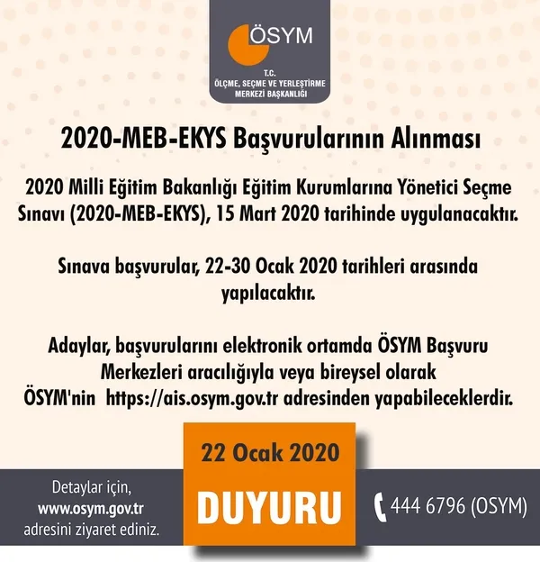 2020 EKYS başvuruları başladı. Ölçme, Seçme ve Yerleştirme Merkezi tarafından her yıl düzenlenen ve Milli Eğitim Bakanlığı bünyesinde yönetici olarak hizmet vermek isteyen vatandaşların katılım sağladığı Yönetici Seçme Sınavı için binlerce aday araştırmalara başladı. Başvuru şartları arasında ise kişilerin bakanlık kadrolarında öğretmenlik yapması gerektiği biliniyor. Peki, 2020 EKYS başvurusu nasıl ve nereden yapılır? EKYS başvuru işlemleri ne zaman sona eriyor? İşte ÖSYM Yönetici Seçme Sınavı ile ilgili detaylar…