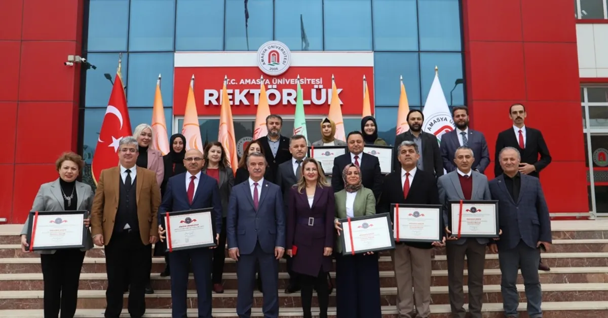 Programda, Amasya Üniversitesi Rektörü Prof. Dr. Süleyman Elmacı, Amasya Üniversitesi Rektörlüğü adına Turuncu Bayrak Sertifikalarını Genel Sekreter Duran Çuhadar'a, Hüseyin Hüsameddin Yasar Kütüphanesi adına Kütüphane ve Dokümantasyon Daire Başkanı İlhami Türk Yılmaz'a, Fen Edebiyat Fakültesi adına Dekan Prof. Dr. Dudu Duygu Kılıç'a, Merzifon İktisadi ve İdari Bilimler Fakültesi adına Fakülte Sekreteri Mustafa Ünler'e, Yabaıncı Diller Yüksekokulu adına Yüksekokul Müdürü Doç. Dr. Melike Baş'a, Merzifon Meslek Yüksekokulu adına Prof. Dr. M. Burak Bilgin'e, İlahiyat Fakültesi Adına Dekan Yardımcısı Doç. Dr. Recep Orhan Özel'e ve Yeşil Bayrak sertifikasını Dr. Öğretim Üyesi Abdülhamit Budak'a verdi.