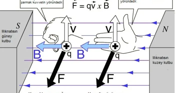 Hareketli yüke etkiyen magnetik kuvvet, bu yükün hız vektörü ile yük çevresindeki magnetik alan vektörünün belirlediği düzleme dik doğrultudadır.
