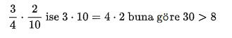 Örnek: 3/4 > 3/8 > 3/11 > 3/14