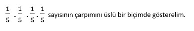 Örnekte aynı sayının dört kere çarpıldığını görmekteyiz. Bu yüzden biz de bu dört çarpımı üslü olarak şu şekilde gösteririz: