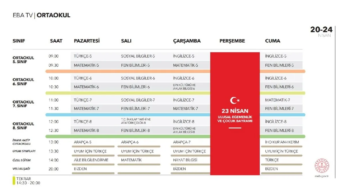 İşte, 24 Nisan ders programı, yayın akışı ve uzaktan eğitim canlı izleme ekranı