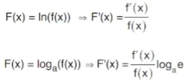 Logaritma fonksiyonunda türev almak için kullanılması gereken formül şu şekildedir: