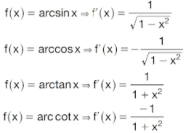 Ters trigonometrik fonksiyonlar için kullanılan formüller şu şekilde: