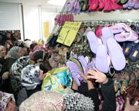 Bir haftada yaklaşık 15 bin çift terlik sattıklarını belirten Demir, "Bu kadar izdiham olmasına gerek yoktu. Elimizde çok sayıda ürün var" dedi.