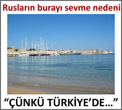 Nikolayeviç Samaylov'a daire sattık. Artık o da yazları ailesiyle Mersin'e gelecek ve Akdeniz ile buluşacak.''Üst düzeydeki Rus müşterilerin ülke turizmine önemli katkılar sağlayacağına inandığını dile getiren Yükselgüngör, ''Yabancı turistler, turizmin doruğa ulaştığı Antalya, Ege sahilleri yerine artık daha bakir, deniz, kumu daha güzel olan Doğu Akdeniz'i keşfetmeye başlıyor. Bizim hedefimiz kaliteli turisti çekebilmek. Biz de bunu başarıyoruz, Rus milletvekillerinin ardından Devlet Başkanı'nın danışmanını kentimizde tatil yapacak olması, çalışmalarımızı olumlu yönde etkileyecek'' dedi.