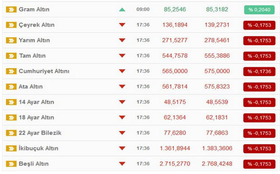 ALTIN FİYATLARINDA SON RAKAMLAR