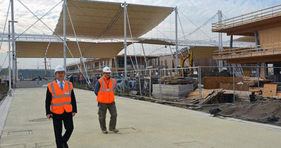 Başlamasına az bir süre kaldığı için hummalı bir çalışmanın yürütüldüğü şantiyede, EXPO 2015'e katılım sözleşmesini daha önce imzalayıp pavilyonlarının inşaatına başlayan bazı ülkelerin, inşaatlarında önemli aşama kaydettikleri görüldü.