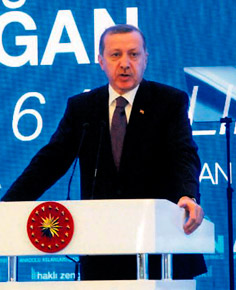 Kriz çığırtkanlarına rağmen Türkiye'nin yoluna devam ettiğini belirten Erdoğan, kredi derecelendirme kuruluşlarını da siyasi karar aldıkları gerekçesiyle eleştirdi. Erdoğan, "Bu ülkenin havasını soluyup, ekmeğini yiyip, gizli ya da aleni ülke ekonomisi aleyhine çalışanlar var. Ama onların karşısında ülkesini, vatanını, bayrağını seven aslanlar da var" diyerek AKSON, MÜSİAD ve TÜMSİAD'a teşekkür etti. Erdoğan, işadamlarına Afrika'ya gitmeleri çağırısı da yaptı. Rusya Devlet Başkanı Vladimir Putin'le yapılan anlaşmaları eleştiren Batılı ülkelere sert çıkan Erdoğan, "Yok öyle 25 kuruşa simit" dedi.