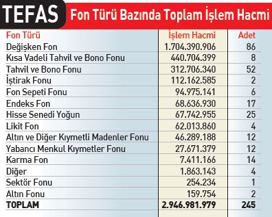 fon sektörü özellikle 2000'li yıllarda hızla büyüdü. Yatırım fonlarının portföy büyüklüğü 1999'da 1.2 milyar TL'den 2003'te 19.9 milyar TL'ye, 2014'te ise 35 milyar TL'ye çıktı. Ülkemizde son yıllarda fon sektörü önemli mesafe kat etmesine rağmen gelişmiş ülkelerdeki fon sektörleri ile karşılaştırıldığında yetersiz kaldığı açık. Bu çerçevede; SPK ile yürütülen çalışmalar sonucunda, yatırımcıların tüm fonları tek bir işlem platformu üzerinden almalarına imkân sağlanarak fon sektörünün geliştirilmesi amacıyla yenilenen yapısı ile Türkiye Elektronik Fon Alım Satım Platformu (TEFAS) 9 Ocak 2015 tarihinde hizmet sunmaya başladı. TEFAS'ta hali hazırda 252 adet yatırım fonu ve 175 kurum üye durumda. Yatırımcılar hesapları hangi kurumda olursa olsun, yeni bir hesap açmaya gerek duymaksızın, hesabının bulunduğu dağıtım kuruluşlarının doğrudan merkez ve şubeleri ile internet şubeleri üzerinden TEFAS'ta işlem yapabiliyor.