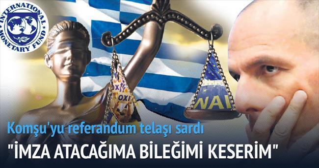 IMF'ye olan 1.6 milyar euroluk borcunu ödemeyerek dünya gündeminin ilk sırasına oturan Yunanistan'da sular bir türlü durulmuyor. Önceki gün Başbakan Aleksis Çipras'ın yaptığı "Her mevsimin başbakanı değilim. Referandumdan 'evet' çıkarsa istifa ederim" açıklamasının ardından dün bir istifa açıklaması da Maliye Bakanı Yanis Varufakis'ten geldi. Varufakis, Bloomberg'e verdiği röportajda, "Görüşmelere devam edilmesi için ne gerekirse yapacağım. Referandumdan 'hayır' çıkarsa yeniden görüşmelere başlayabiliriz. 'Evet' çıkarsa derhal istifa edeceğim" dedi. Avusturyalı radyo kanalına açıklamalarda bulunan Varufakis, "Bize koloni ülkesi muamelesi yapıyorlar" diyerek Euro Bölgesi'ni eleştirdi ve referandumdan 'hayır' sonucunun çıkmasını beklediğini ifade etti. "İstesek de drahmiye dönemeyiz çünkü banknot basacak matbaaları imha ettik" diyen Varufakis, ülke borcunun yapılandırılmasını kapsamayan bir anlaşmanın altına imza atmaktansa bileğini keseceğini ifade etti. Yapılan anketlerde 'hayır' oyları yüzde 46 seviyesinde seyrediyor. "Kemer sıkma politikalarına karşı çıkmamızın nedeni verdiğimiz sözdür" diyen Maliye Bakanı, "Biz bir sol partiyiz ama Euro'da kalmayı çok istiyoruz. Borçların yeniden yapılandırması olmadan herhangi bir anlaşma imzalamayacağım" ifadelerini kullandı. Varufakis, "Turistlerin paraya ulaşmada sıkıntı yaşadığını söyleyemeyiz. Avrupa'nın bizim demokrasimizi kabul etmesi gerekiyor" diye konuştu.