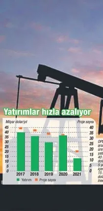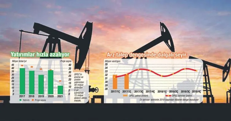 Arama ve üretim yatırımları ile satış, pazarlama ve dağıtım yatırımlarında da sektörün birçok büyük şirketi temkinli. Petrolün 50 dolar seviyesindeki seyri nedeniyle uzun süredir kârlar eridi ve yeni yatırım gelmiyor. Üretici ülkelerin birçoğunda ya savaş nedeniyle sahaların elden geçmesi lazım ya da arzı artırmak için yeni modernizasyonlar gerekiyor. OPEC eylül ayı raporuna göre kapasite artırımı ile yeni arama ve üretim yatırımı yok denecek kadar az. Yine OPEC tahminlerine göre 2018 ve 2019'da da yatırımlar azalacak. Orta vadede 2021'e kadar 160 projeye 156 milyar dolarlık bir yatırım öngörülüyor. 2017'deki 45 milyar dolarlık yatırım miktarı 2021'de 20 milyar doların altına inecek.
