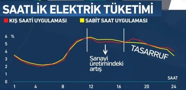 Sabah 06.00-09.00 saatlerinde sabit saat uygulamasından sonra elektrik tüketiminde düşük seviyede bir artış gözlenirken, kalıcı uygulamayla ilgili diğer saatlerdeki tüketim düşüşleri sabah oluşan artışın önüne geçtiği için elektrik tüketiminde kümülatif anlamda tasarruf elde edildi.