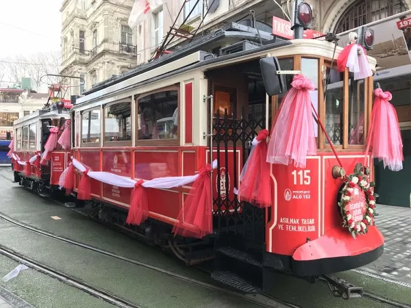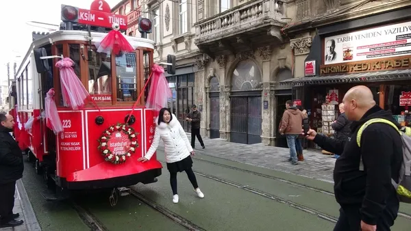İstiklal Caddesi'ndeki yenileme çalışmaları nedeniyle Ocak ayı ortasında durdurulan nostaljik tramvay seferleri, bugün yeniden başlıyor. Tünel girişinde bulunan ve açılışa özel olarak süslenen, önlerine ve arkalarına "İstanbul'un aşkıdır tramvay" yazılan nostaljik tramvaylar, fotoğraf çektirmek isteyenler, sıraya girdi. Tramvaylar, yaklaşık 1 yıllık aranın ardından dün Taksim Meydanı'na getirilmiş ve üstleri brandalarla örtülmüştü. Deneme seferleri tamamlanan tramvayların, bugünkü açılışın ardından yolcu taşımaya başlaması bekleniyor.