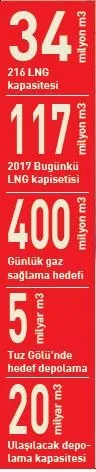 2016 başında Türkiye'nin LNG'den gaz sağlama altyapısında sadece Egegaz ve Marmara Ereğlisi Terminali yer alıyordu. 2016 sonunda günlük 20 milyon m3 gaz sağlama kapasiteli Türkiye'nin ilk FSRU terminali Aliağa'da devreye alınırken, diğer 2 terminaldeki 10 milyon m3'lük kapasite artışı ile 64 milyon m3'e çıktı. 2017'de yapılan yatırımlarla Marmara Ereğilisi günlük 37, Egegaz 40 milyon m3 kapasiteye ulaştı. 2. FSRU olan Dörtyol FSRU ile de 2 FSRU'dan sağlanan toplamda günlük 40 milyon gaz sağlama kapasitesiyle Türkiye günde 117 milyon m3 LNG'den sisteme gaz sağlayacak kapasiteye ulaşmış oldu.