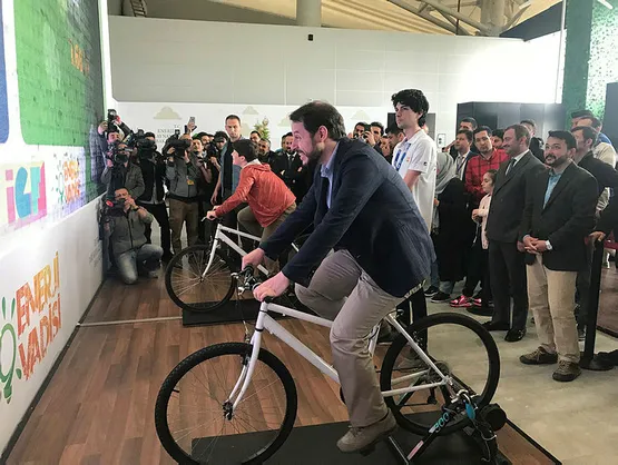 Pedal çevirdikçe enerji üreten bisikletteki yarışı oğluna kıl payı kaptıran Albayrak, "Enerjiyi ürettik, artık sırada depolama var" dedi.