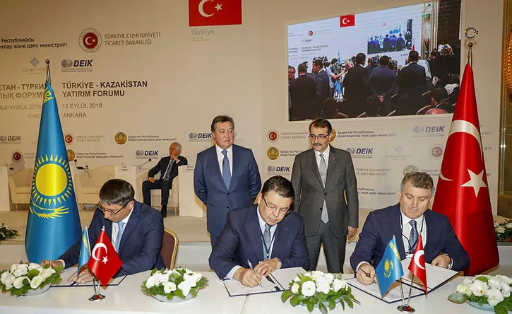 Bugün Kazakistan'daki Türk yatırımların Kazak ekonomisinin büyümesine ve Kazaklılara istihdam sağlamasına sunduğu katkılardan büyük memnuniyet duyduklarını dile getiren Bakan Dönmez, "Rusya ve Çin'den sonra Türkiye, Kazakistan'da en fazla yabancı hisseli şirkete sahip üçüncü ülkedir. Türk şirketleri telekomünikasyondan bankacılık ve finans sektörüne, enerjiden havaalanı işletmeciliğine kadar pek çok alanda yatırımlarına devam ediyor. Cumhurbaşkanı Nazarbayev'in liderliğinde Kazakistan büyük hedeflere yürüyor. İlan edilen Kazakistan 2050 stratejisi, Kazak ekonomisinin gelecekteki büyüklüğünü ve gücünü göstermesi açısından izlenecek yolun ne denli kapsamlı ve çok boyutlu olduğunu ortaya koyuyor. Geleceğin güçlü Kazakistan'ının temelleri bugünden atılıyor. Bizler de Kazakistan'ın yüksek ideallerinin ve güçlü geleceğinin bir parçası olmaktan büyük mutluluk duyacağız. Türkiye kamu ve özel sektör tecrübesiyle, Kazakistan'ın hayata geçirmek istediği projelere gerekli her türlü desteği vermek için hazırdır. Özellikle Türk müteahhitleri Kazakistan'da bugüne kadar 24,4 milyar dolar değerinde yatırım gerçekleştirdi. Aralarında havalimanları, enerji ve bakır tesisleri, yollar, köprüler, EXPO Fuar inşaatı, suni ada gibi 487 prestijli projenin altında Türk müteahhitlerinin imzası var. Kazakistan bölgede en elverişli yatırım ortamına sahip ülkelerin başında geliyor. Orta Asya ülkelerinin bağımsızlıklarını kazanmalarından bu yana yabancı sermayenin yüzde 80'inin Kazakistan'ın payına düşmesi, bu değerlendirmenin ne denli haklı olduğunu da ortaya koyuyor. Kazakistan'ın da ülkemizde yaklaşık 712 milyon dolarlık yatırımı bulunuyor. Türkiye, yatırımcılara dünyanın en cazip destek ve teşviklerini sunan ülkelerin başında geliyor. Cumhurbaşkanımızın da defaatle dile getirdiği üzere Türkiye'ye güvenen, Türkiye'ye yatırım yapan, Türkiye'yle birlikte yol yürüyen hiçbir zaman kaybetmedi, kaybetmeyecek. Özellikle teşvik sistemimizi gelişen ekonomimiz ve yatırımcıların beklentilerine göre sürekli geliştiriyoruz. Kazak kardeşlerimizin Türk ekonomisinin sunduğu fırsatlardan daha fazla yararlanmasını arzu ediyoruz. Bu alanda daha büyük adımlar atmalı, yatırımcılarımızın önünü açmalıyız. Bu nedenle 1992 yılında imzalanmış olan Yatırımların Karşılıklı Teşviki ve Korunması Anlaşmasının güncellenmesine büyük önem atfediyoruz. Bugün Türkiye ve Kazakistan arasında 1,7 milyar dolarlık, 18'i ticari olmak üzere 22 anlaşmanın imzalanmasından büyük memnuniyet duyuyoruz. Kazakistan Cumhurbaşkanı Nazarbayev'in ziyareti vesilesiyle, anlaşmalara yeni projeler eklenerek güncellenecek ve kapsadığı alanlar daha da zenginleştirilecek. Eylem Planı, yatırımcılarımıza Kazakistan'a yönelik planlarında ışık tutmayı amaçlıyor. Birçok önemli başlığı ihtiva eden söz konusu Eylem Planı'nda yer alan projelerin hayata geçmesiyle, ikili ekonomik ve yatırım ilişkilerimizde yeni bir ivme yakalayacağımıza inanıyorum. Türkiye bugün dünyanın en büyük on yedinci, Avrupa'nın en büyük altıncı ekonomisi durumunda. 2017 yılında yüzde 7,4 büyüme oranıyla G-20 içerisinde en hızlı büyüyen ülke olduk. Hafta başında açıklanan yüzde 5,2'lik 2018 yılı ikinci çeyrek büyüme rakamıyla üst üste yedi çeyrektir büyümeye devam ediyoruz. Her türlü sınamaya rağmen, Türk ekonomisi dinamik olduğu kadar güçlü ve güven veren altyapısıyla, önemli bir yatırım merkezi olmaya devam edecek. Ticaret savaşlarının yaşandığı, gümrük duvarlarının sürekli yükseltildiği, haksız rekabetin körüklendiği günümüz dünyasında, Türkiye; dünyaya entegre olan serbest piyasa ekonomisiyle yatırımcılarına öngörülebilir bir gelecek sunmaktadır" diye konuştu.