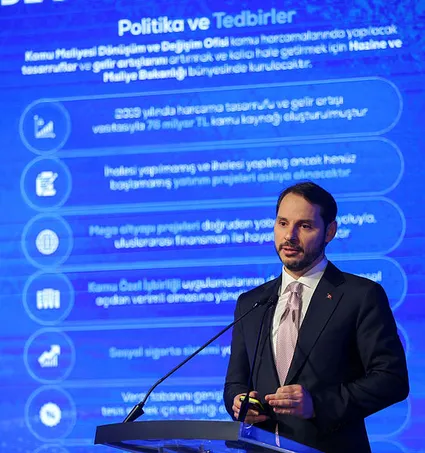 Hazine ve Maliye Bakanı Berat Albayrak, Cumhurbaşkanlığı Dolmabahçe Çalışma Ofisi'nde düzenlediği basın toplantısında hazırlanan Yeni Ekonomi Programı'nı (2019-2021) açıkladı.
