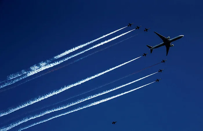 TEKNOFEST kapsamında gerçekleşen tarihi uçuş için ilk olarak saat 15. 35 sıralarında THY'nin Boeing -777 uçağı İstanbul Yeni Havalimanı semalarında görüldü. Pisti pas geçen THY uçağına daha sonra Türk Yıldızları'nın NF-5 uçakları sağ ve sol kolda toplanarak eşlik etti. Daha sonra uçaklar, 'kol uçuşu' denilen gösteri uçuşuyla seyircileri selamladı.