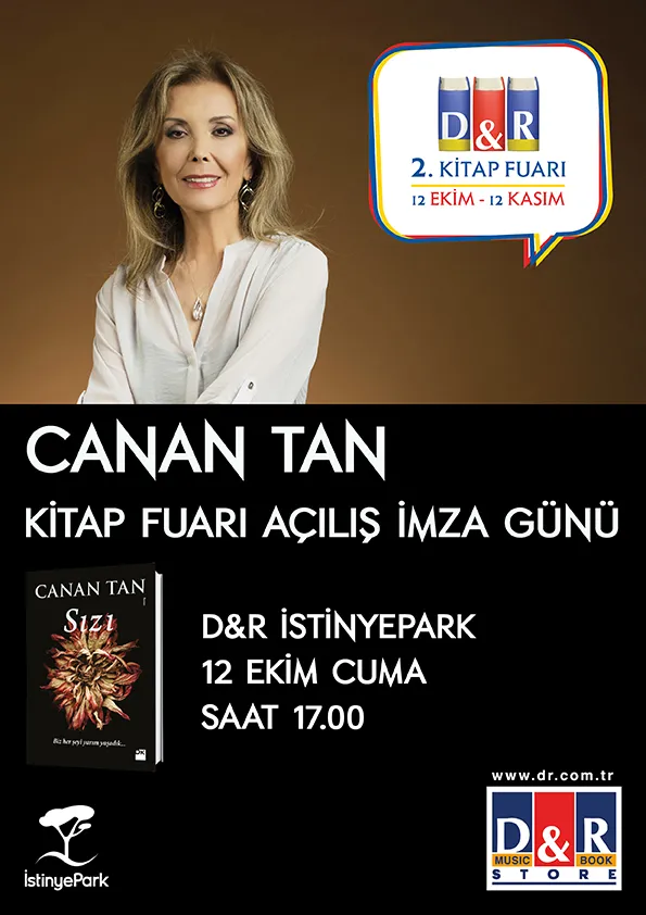 D&R 2. Kitap Fuarı, çok sevilen yazarları okuyucularıyla buluşturuyor. 12 Kasım'a kadar devam edecek Kitap Fuarı 12 Ekim Cuma günü D&R İstinyepark'ta sevilen yazar Canan Tan'ın ünlü bir astroloğun yaşam öyküsünü konu aldığı yeni kitabı "Sızı"nın imza günü ile başlayacak.