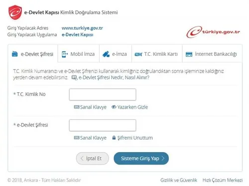 E-devlet şifresinin dışında alternatif bir yöntemle sisteme giriş yapmak için T.C. kimlik kartı, e-imza, mobil imza, internet bankacılığı seçeneklerden birini kullanabilirsiniz.