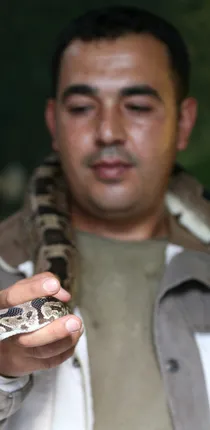 Yılan bakıcısı Fatih Özkal, AA muhabirine yaptığı açıklamada, sürüngenlere karşı merakının geçmişe dayandığını söyledi.