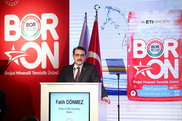 İçeriğinde doğal mineraller ve bitkisel içerikli hammaddeler yer alan yerli ve milli temizlik ürünü BORON'un tanıtım toplantısı bugün Enerji ve Tabii Kaynaklar Bakanı Fatih Dönmez ve Eti Maden İşletmeleri Yönetim Kurulu Başkanı Serkan Keleşer'in katılımıyla gerçekleştirildi.