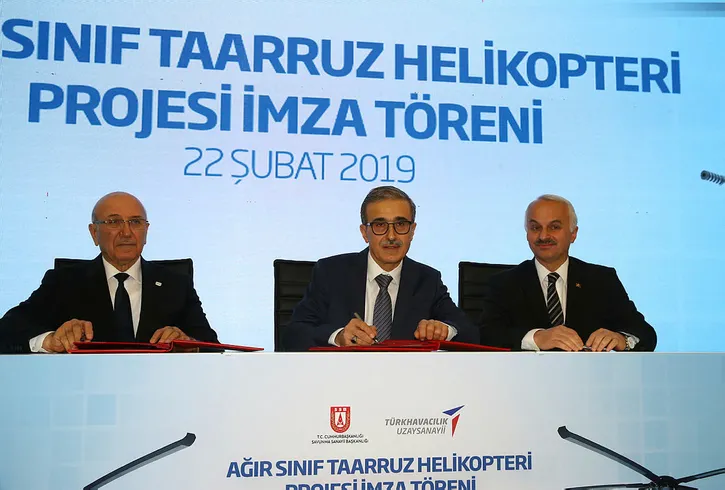 Savunma Sanayii Başkanlığı (SSB) ile Türk Havacılık ve Uzay Sanayii AŞ (TUSAŞ) arasında Ağır Sınıf Taarruz Helikopter Projesi Sözleşmesi imzalandı.