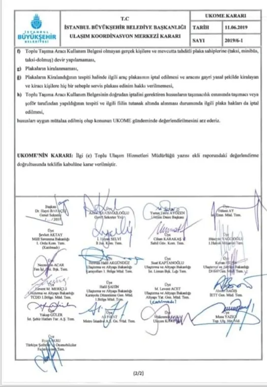 İstanbul Büyükşehir Belediyesi'nin yapmış olduğu araştırmalarda kullanılan mevcut öğrenci ve personel servis sayısının yeterli olduğu tespit edildi. Buna dayanarak UKOME, İBB'den daha önce Servis Taşımacılığı Kartı almış ve Mevcut Taşımacı Hakkı'na sahip kişilere tahditli plaka verdi.
