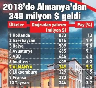 Dünyada, sınır komşusu olmayıp, çok güçlü ekonomik ve ticari bağlara sahip ender müttefiklerden biri de Türkiye-Almanya ortaklığı. İki ülkenin 100 yılı aşan müttefiklik tarihi ekonomi alanında da bir asırdır hız kesmeden devam ediyor. Almanya Türkiye'nin yatırımda da ihracatta da turizmde de en büyük ekonomik ortakları listesinin üst sıralarındaki yerini koruyor. Almanya 2018'de önceki yıllarda da olduğu gibi, Türkiye'nin ihracatında birinci sırada yer alırken ithalatında Rusya ve Çin'in ardından üçüncü sıraya oturdu.