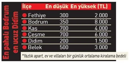 Yazlık tatilinde Fethiye, Bodrum ve Kaş'ın ilk üçte yer aldığını aktaran Patıroğlu, "Apartların günlük kiraları 200 TL'den başlıyor. Villalarda ise fiyatlar konumu, havuzu vs'ye göre değişiklik gösteriyor" diye konuştu. Tatil Villacınız Turizmin sahibi Hüseyin Gencer de, bu yıl yazlık villaların kiralarının günlük ortalama 1.000 TL'den başlayıp 10 bin TL'ye kadar çıktığını söyledi. Acentelerin portföyündeki ev ve villaları pandemi nedeniyle ekstra sterilize edeceğini belirten Gencer, evlerde ozon makineleriyle temizlik yapıldığına dikkat çekti. Yazlığa paralel talebin arttığı bir diğer alan da kamp turizmi oldu. Kamp alanı kiralamaları günlük 100 TL'den başlarken, kamp alanlarına da yüksek bir talebin oluşacağı vurgulanıyor. Elektronik Ticaret İşletmecileri Derneği (ETİD) Başkanı olarak Emre Ekmekçi, kamp turizminin çadır ve karavan ekipmanı satışlarını artırdığını belirtti. Ekmekçi, "Çadır, uyku tulumu, katlanır sandalye gibi kamp ekipmanlarında geçen yılın aynı dönemine göre satışlar yüzde 30 arttı. Ancak bu ürünlere yönelik aramalar iki katından fazla artış gösterdi. Turiste tatil izninin verilmesiyle birlikte satışlar ikiye katlar" ifadelerini kullandı.