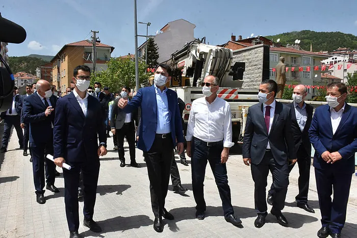 "Yaptığımız konutlar Kızılcahamam'ın yöresel mimarisine uygun, Ankara evlerinin yansıtıldığı, ahşap ve taşın doğal malzemelerin kullanıldığı şehir merkezinde meydanla birleşmiş çok önemli bir kentsel dönüşüm projesini de gerçekleştirmiş olacağız. Yöresel lezzetlerin pazarlandığı yeni bir pazar yeri inşa ediyoruz. Hem yerel esnafımız hem köylümüz gelip burada ürünlerini pazarlayabilecekler. Diğer taraftan millet bahçeleri noktasında da çalışmalarımızı yürütüyoruz. Bugüne kadar 204 millet bahçesi süreci yürüttük. Kızılcahamam'da da bir millet bahçesi sözü vermiştik. Yeşili artıracak bir millet bahçesi de buradan vatandaşlarımıza şimdiden hayırlı olsun diyorum. İnşaatına bu ay başlayacağız. Tüm bunların bütününde biz Kızılcahamam'ı bir sıfır atık ilçesi seçmiştik. Kızılcahamam'ı tüm dünyaya örnek olacak, içinden çöp kamyonunun geçmediği, atıkların kaynağında ayrıştırıldığı aynı Japonya'daki Kamikatsu kasabası gibi burada geri dönüştürülebilecek atıkların geri dönüştürüldüğü, yine kompost makinesinde organik atıkların gübre haline getirildiği ve çöp kamyonunun ilçeye girmediği bir sıfır atık kasabası ilanı yapmıştık. İşte bugün artık son noktaya getirdiğimiz geri atık getirme merkezi ve dönüştürme merkezimizin inşaatını inceleme fırsatı bulduk. İnşallah Emine Erdoğan Hanımefendi ile birlikte açılışını da önümüzdeki günlerde gerçekleştireceğiz. Bu çerçevede 2023'e kadar tüm Türkiye'de sıfır atık uygulamasını yaygınlaştıracağız ve bu çerçevede yıllık 20 milyar lira tasarruf, 100 bin kişiye de doğrudan istihdam sağlamış olacağız. Normalde 1 ayda çıkan atık artık haftada bir çıkmaya başlıyor. Haftada 11 ton atık geri dönüştürülüyor. Bir diğer projemiz de termal turizm noktasında Kızılcahamam'ı çok daha yukarıya çekecek adımlar atacağımızı ifade etmiştik. Yeni bir sondaj kuyusu açtık. 750 metreden, 66 litre saniye, 77 derecede bir termal su kaynağı bulundu. Bu kaynaktan hem vatandaşlarımız hem turizm tesislerimiz faydalanacaklar."