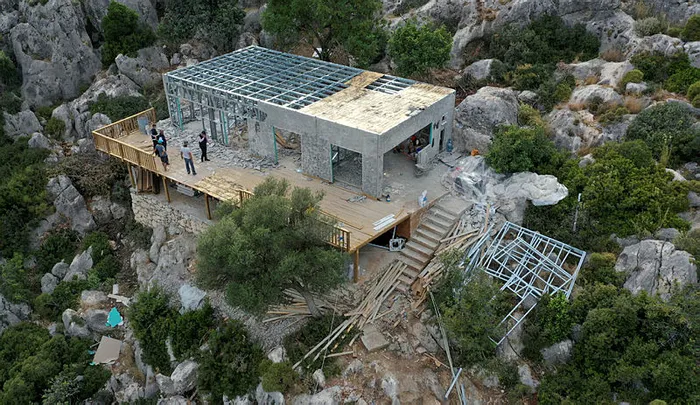 48 saatte yapılan, yapımından 10 gün sonra yine yaptıranlar tarafından yıkılmaya başlanan kaçak villanın Koyun Adası karşısındaki arazisi, 1990 yılında H.E.İ.'ye satıldı. Zilyetlik olan arazi, içindeki 98,50 metrelik yapı ile beraber 1304 metrekarelik büyüklüğe sahip. H.E.İ., yapılaşmanın kesinlikle yasak olduğu yere beyana dayalı olarak 7 Kasım 2018 tarihinde yapı kayıt belgesi aldı. H.E.İ., 6 Nisan 2020 tarihinde ise noter kanalıyla araziyi M.A.'ya devretti. M.A. ise 98,50 metrekarelik yapıyı yıkarak, yerine çelik konstrüksiyon, ahşap balkonlu villa inşa etti. Villa yapımı sırasında, deniz kıyısından villaya kadar malzeme taşımak için ray kurulduğu ortaya çıktı. 48 saate bitirilen villa, Demre Belediyesi ekipleri tarafından mühürlendi.