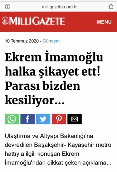 İMAMOĞLU'NUN; "BAŞAKŞEHİR-KAYAŞEHİR METROSU'NUN PARASINI PEŞİN PEŞİN BİZDEN KESİYORLAR" İDDİASI
