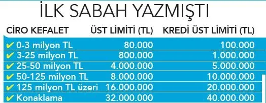 Küresel salgın Kovid-19 nedeniyle zor bir süreçten geçen turizm sektörünün beklediği destek paketi geldi. SABAH'ın geçen hafta "Turizmcilere Müjde" başlığıyla sayfalarına taşıdığını Kredi Garanti Fonu (KGF) kefaletiyle 10 milyar TL'lik finansman desteği dün Türkiye Bankalar Birliği (TBB) tarafından açıklandı. Krediler, 1 Kasım 2021 tarihini aşmamak kaydıyla, azami 12 ay ödemesiz dönem olmak üzere 48 ay vadeli olacak. Faiz oranı, sabit faizli krediler için azami yüzde 14.5, değişken faizli krediler için TLREF+200 baz puan olarak belirlendi. Yararlanıcı başına kefalet üst limiti 32 milyon TL ve kredi üst limiti 40 milyon TL olacak.